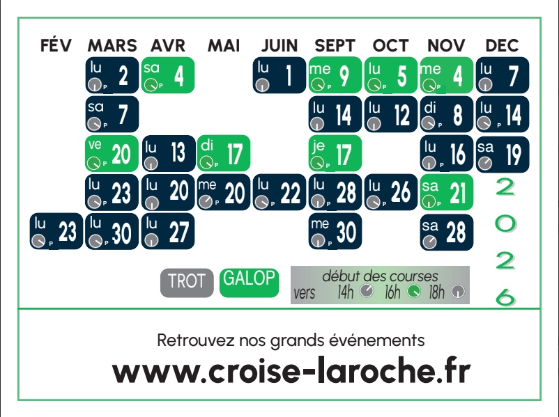 Voici le programme officiel des courses au Croisé-Laroche en 2026 !